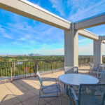 Rare opportunity to own a fabulous double unit with 3 bays in the coveted 123 Walnut Street Condominium building. This exquisitely appointed condo features an open, flexible floorplan, and boasts a huge primary suite with two baths, two separate offices with custom built in bookshelves, closets and dressing areas. Two additional bedroom suites each with their own bath. The primary suite could be used as is or reconfigured to accommodate additional bedrooms if needed. Gigantic front and back terraces offer sublime panoramic views of Audubon Park, the Mississippi River, and the city skyline. Building amenities include a rooftop party room with panoramic views, rooftop pool, and exercise room. The condo comes with two deeded, covered parking places next to the elevator.